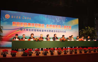 北京市地方税务局苏文权副局长在活动仪式讲话中表示,地税部门以农村作为税收宣传重点之一,就是用实际行动贯彻落实十七大精神,推进新农村建设进程,完善农村税收征管制度,拓宽延伸纳税服务领域,认真执行好国家有关促进农村经济发展的税收优惠政策,送税收政策到农家,扶持农村经济发展,帮助农民步入小康。把大学生“村官”作为税收宣传的载体和切入点,就是发挥大学生“村官”工作生活在农村基层,走家串户、贴近农民,最能了解农民心愿的特殊作用。地税部门利用 “税官”志愿服务队与分布在各乡(镇)、村的“村官”互动等活动,及时了解农民在经济活动中想知道的税收政策规定、盼望的纳税服务方式,以便地税部门有针对性的开展税收调研、税收宣传和纳税服务,为农民解决经济发展中遇到的实际问题,改善农村经济发展的大环境,增加农民收入,富裕农民生活,让新农村的各种经济活动成为合法经营、依法纳税、保护权益、健康和谐的典范。